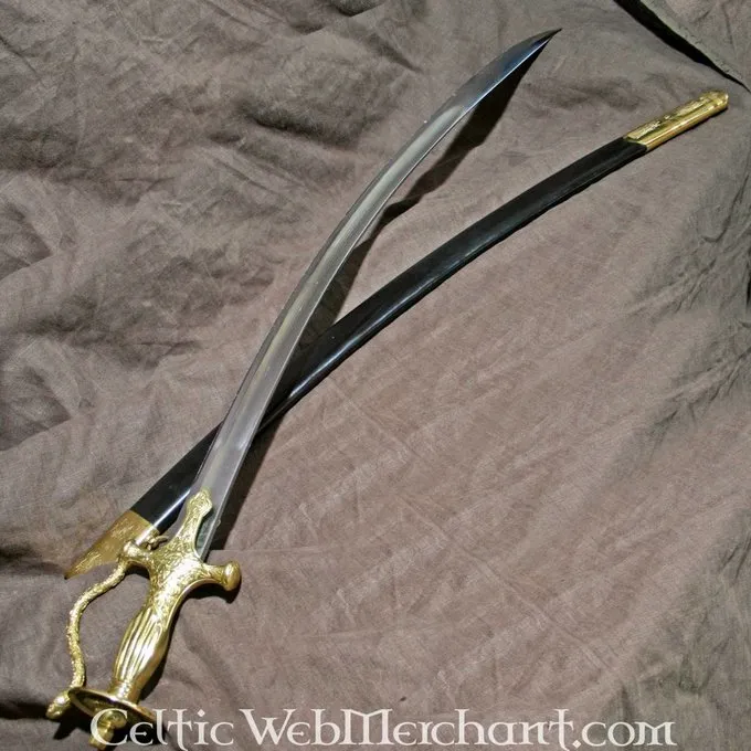 Productdetails: Lengte: 86 cm / Klinglengte: 73 cm / Griplengte: 13 cm / Gewicht: 1077 gram / Staaltype: 1090 koolstofstaal / Snede: Scherp / Tangconstructie: Volledige tangconstructie / Pommel: Geklonken / Gripwikkeling: Messing / Gebaseerd op historisch