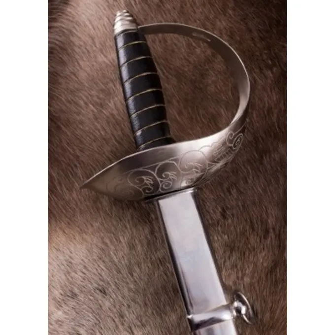 De cavaleriesabel van 1912 was het allerlaatste zwaard dat werd uitgegeven aan de cavalerieofficieren van het Britse leger – dit in een tijd waarin aanvallen te paard grotendeels achterhaald waren en zwaarden zelden als gevechtswapen werden gebruikt. Het werd beschouwd als het beste cavaleriezwaard ooit ontworpen en was nog steeds in gebruik tijdens de Eerste Wereldoorlog. Het model uit 1912 was duidelijk gebaseerd op het model uit 1908, maar was veel uitgebreider versierd. Toen het voor het eerst werd geïntroduceerd, werd het aan alle officieren verstrekt om de inconsistente zwaarden te vervangen die ze eerder privé hadden verworven. In vergelijking met het standaardzwaard was de grip ingenieuzer ontworpen: terwijl de standaardversie van 1908 van de eenvoudige soldaten was uitgerust met een grip van rubber of bakeliet, werden deze materialen in de officiersversie vervangen door haaienleer met inleg van nikkelzilver draad. Bovendien was de mand versierd in de stijl van de officierszwaarden uit de 19e eeuw met een geëtste bloemengravure (kamperfoeliemotief). Het model uit 1912 wordt nog steeds gebruikt als ceremonieel zwaard door Britse, Australische en Canadese cavalerie-eenheden. Deze mooie, goedkope replica van Deepeeka, heeft een recht, enkelsnijdend lemmet van verenstaal EN45, dat over ongeveer tweederde van zijn lengte een bloedgoot heeft. De grip met een houten kern is omwikkeld met zwart leer en gedraaid staaldraad. Een prachtige sabels voor verzamelaars en 20ste eeuws reenactment.