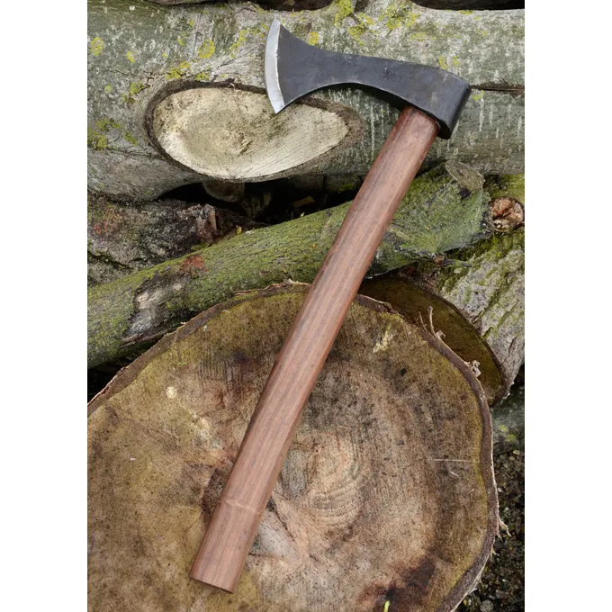 Materiaal: koolstofstaal, hout / Snede: scherp / Lengte: 45 cm / Lengte bijlkop: 18 cm / Gewicht: 800 g / Geschikt voor bijlwerpen, bij intensief gebruik de schacht op termijn vervangen / Gebaseerd op een historisch origineel