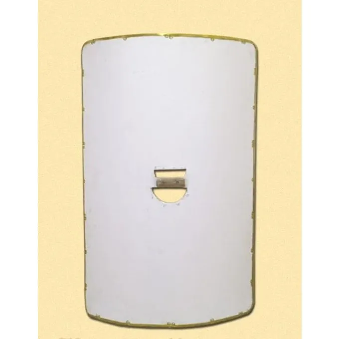 Dit schild is van 1,2 cm dik en van verschillende lagen hout gemaakt. Hij is overtrokken met ongeverfd linnen. Het schild kan dus zelf worden geverfd in de gewenste kleuren, met zowel moderne als historische verf. De achterkant is versterkt met smalle houten latten. Het schild is te dragen aan een greep achter de schildknop. Hij is 108 cm hoog, 88 cm breed (inclusief kromming) en weegt 7 kg.