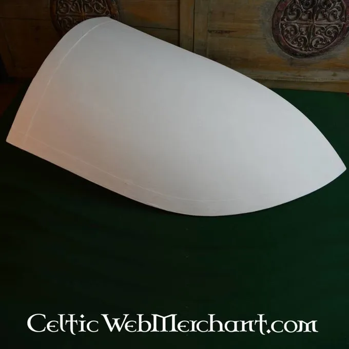 Dit vliegerschild is gemaakt van 1,2 cm dik hout. Hij is in het wit beschilderd, zodat er gemakkelijk een eigen kleur of wapenschild op kan worden geschilderd. Op de achterkant is een grip. Het schild heeft een formaat van 68 x 51 cm en weegt 1,5 kg.