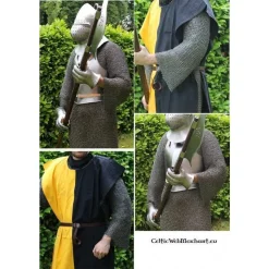 Dit type maliënkolder werd veel in de middeleeuwen gebruikt. De split zorgt ervoor dat hij ook gemakkelijk te paard gedragen kan worden en de beweeglijkheid van de drager zo min mogelijk belemmert. De hauberk heeft lange mouwen en is gemaakt van mild steel.