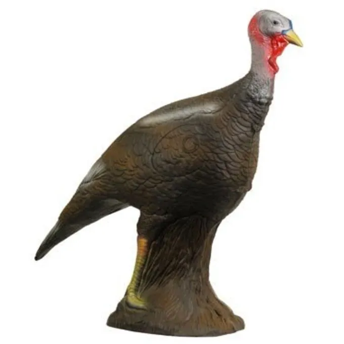Dit 3D doel in de vorm van een staande kalkoenhen heeft een lengte van ca. 80 cm en zijn hoogte is ca. 80 cm. Hij weegt ca. 6 kg.