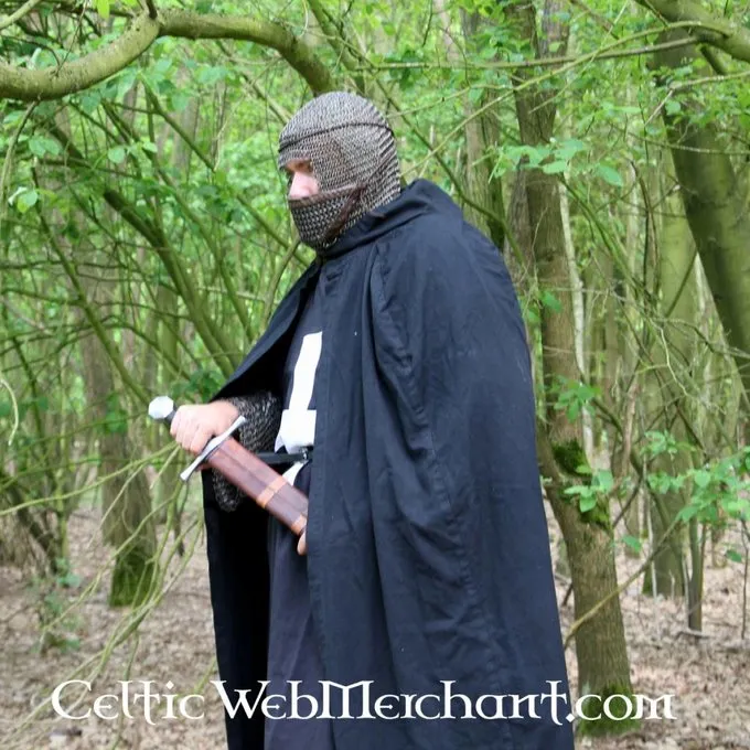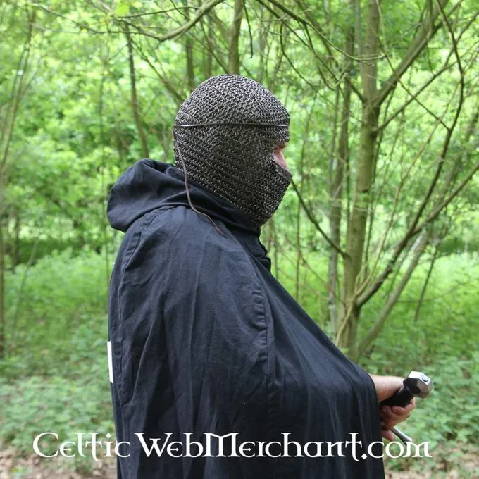 Deze maliënkap is gemaakt van 1,6 mm dikke mildsteel ringen met een binnendiameter van 8 mm. Hij is 4 in 1 gewoven van gebronsde ringen. De kap bedekt de schouders en heeft een driehoekig vizier dat de kin, mond en neus beschermt. Het vizier is aan de binnenkant met leer bedekt. Gewicht ca. 3,3 kg.