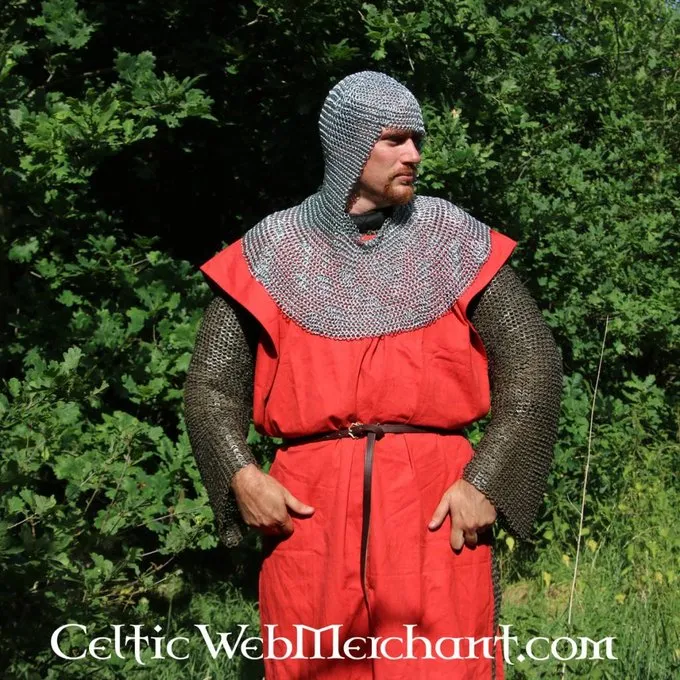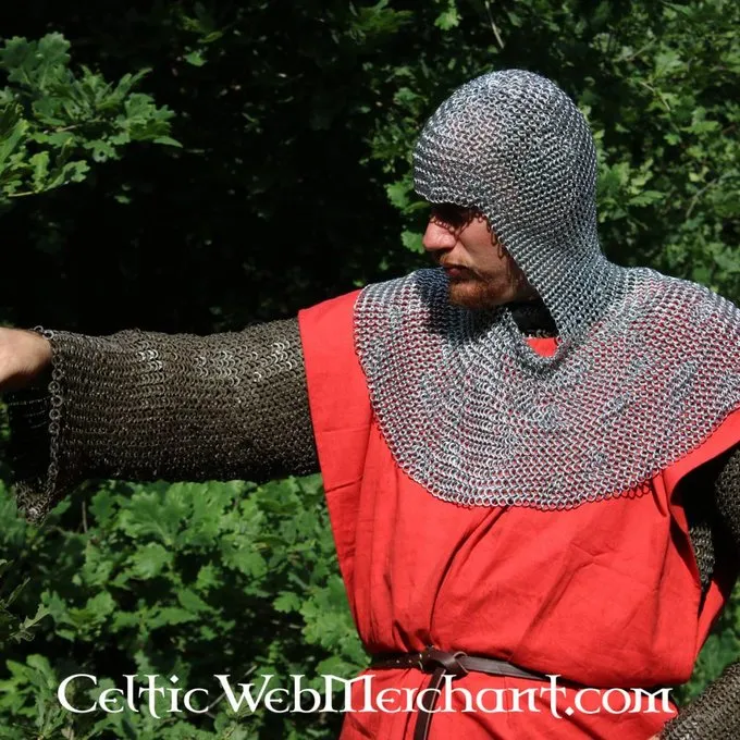Deze maliënkap is gemaakt van 1,6 mm dikke, verzinkte, ongeklonken ronde ringen met een binnendiameter van 8 mm. Ze zijn vier in één gevlochten. De kap heeft een vierkante hals en weegt ongeveer 3 kg.