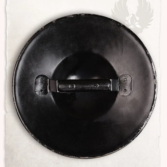 Dit battle-ready schild is van 2 mm dik staal gemaakt. Hij heeft een houten grip. Beukelaars worden veel afgebeeld in Fechtbücher zoals die van Hans Talhoffer en Johannes Liechtenauer.
