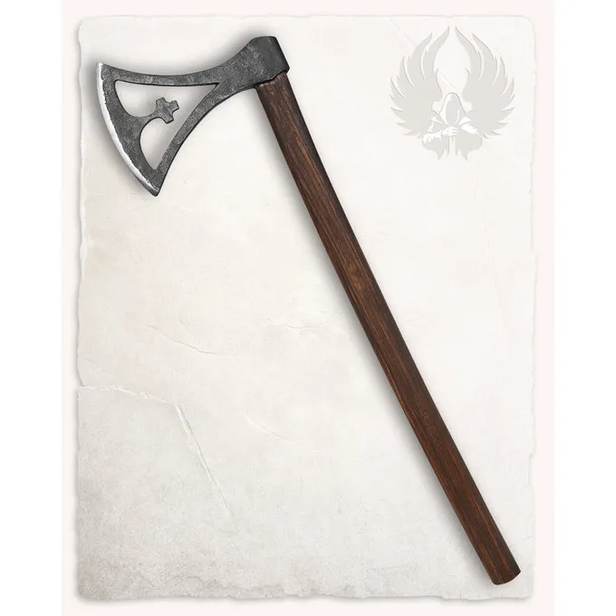 Deze Vikingbijl was één van de weinige soorten bijlen die puur voor de strijd was ontworpen. Originelen zijn onder andere in Gotland gevonden. Door de open binnenkant lag het gewicht lager. De bijl heeft een botte snede, wat hem voor re-enactment geschikt maakt. Hij heeft een gebeitste essenhouten schacht.