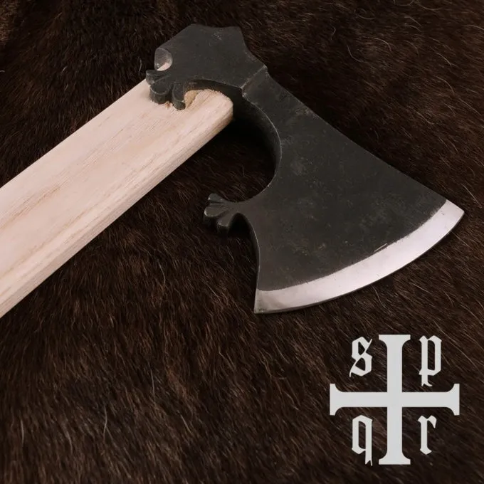 Materiaal: koolstofstaal, essenhout / / Snede: scherp / / Levering inclusief schacht / / Totale lengte: 35 cm / / Formaat bijlkop: 11 x 8 cm / / Dikte schacht: 3 x 1,5 cm / / Gebaseerd op een historisch origineel