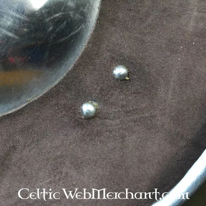 Deze ronde beukelaar heeft een leren bekleding voor extra bescherming. Beukelaars zoals deze werden voornamelijk in de renaissance gebruikt, al was het type velen jaren ouder. Dit wapen is ideaal bruikbaar in combinatie met een enkelhandig zwaard of een boog.
