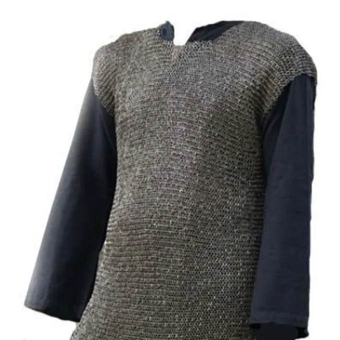 Productdetails: Lengte: 80 cm / Borstomtrek, volledig ingeademd: 105 cm (M) / 125 cm (L) / 135 cm (XL) / Staalsoort: Verenstaal / Staaldikte: 1 mm / Binnendiameter: 6 mm / Geklonken: Ronde ringen, ronde klinknagels / Vlechtmethode: 4:1 constructie / Gewic