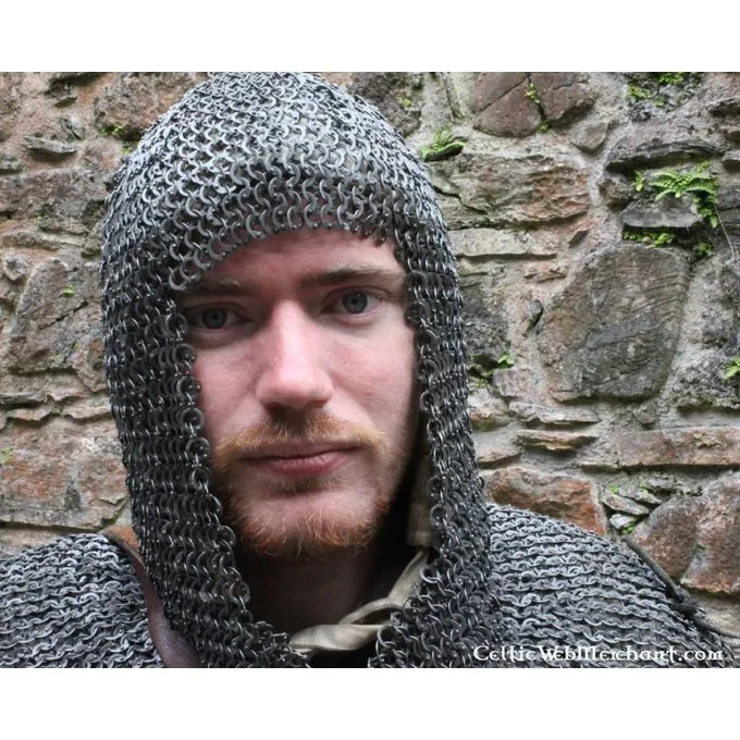 Productdetails: Maximale hoofdomtrek: 67 cm / Staalsoort: Verenstaal / Staaldikte: 1 mm / Binnendiameter: 6 mm / Geklonken: Gemixt platte ringen ronde klinknagels / Vlechtmethode: 4:1 constructie / Gewicht: 3 kg / Gebaseerd op een historisch origineel? Ja