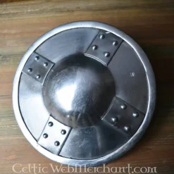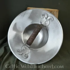 Deze ronde beukelaar is verstevigd met extra stalen platen. Beukelaars zoals deze werden voornamelijk in de renaissance gebruikt al was het type vele jaren ouder. Dit wapen is ideaal bruikbaar in combinatie met een enkelhandig zwaard of een boog.
