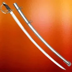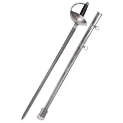 Materiaal: 1065 koolstofstaal getemperd / Hardheid: 48-52 HRC / Pommel: peened / Snede: semi-scherp 1 mm / Lengte: 99,06 cm / Lengte kling: 83,82 cm / Breedte kling: 3,49 cm / Gewicht: 1.47 kg / Levering inclusief schede / Gebaseerd op een historisch orig